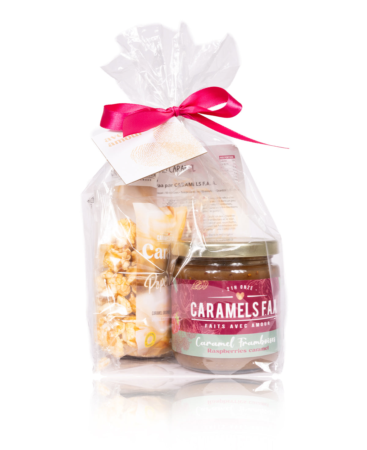• Caramel aux framboises – 315 g : onctueux et légèrement acidulé, un équilibre parfait entre douceur et fraîcheur.